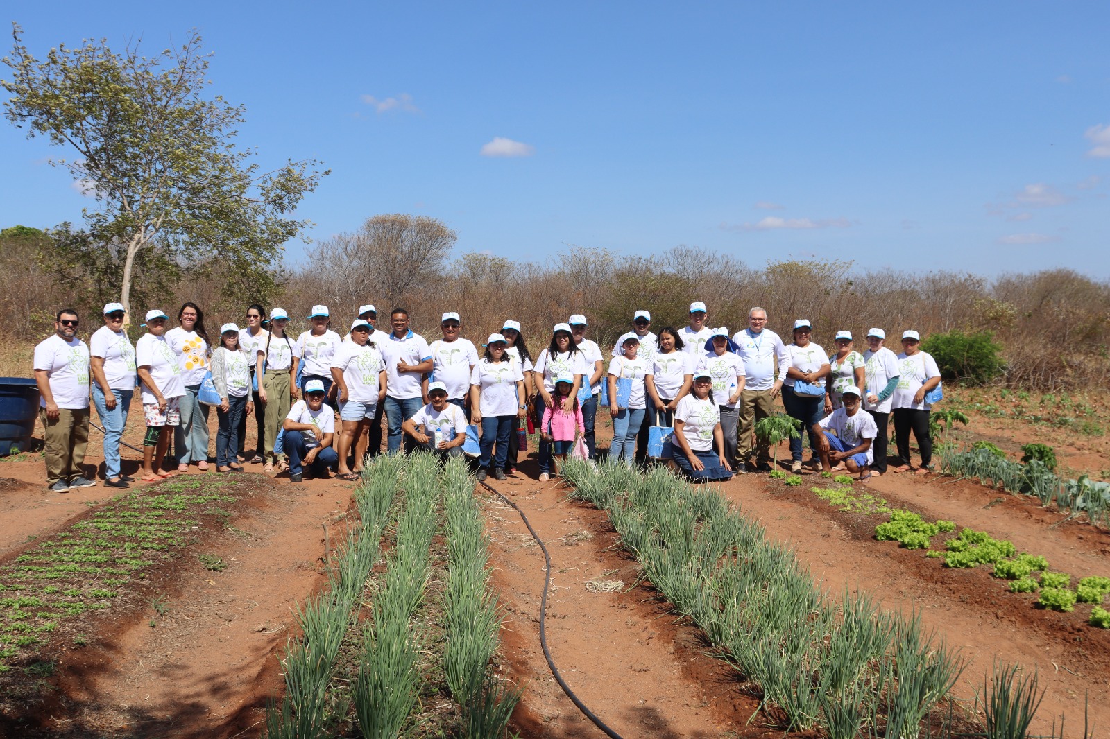 Na aula de campo, realizada no assentamento Professor Maurício de Oliveira, os participantes aprenderam sobre compostagem na horta agroecológica das mulheres (foto).
